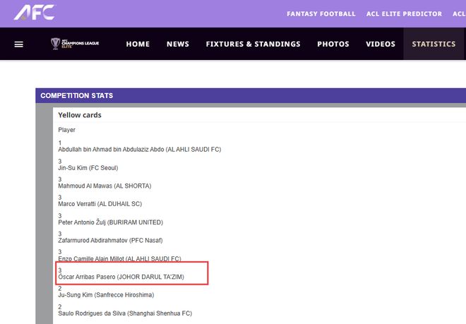 根据亚足联精英联赛规则,亚冠精英联赛阶段累计3张黄牌应该自动停赛一场。而阿里巴斯在本赛季亚冠第1轮、第4轮和第5轮各吃到了一张黄牌,根据规则他无法出战海港。然而本场比赛,他却先发登场,明显违反规则。